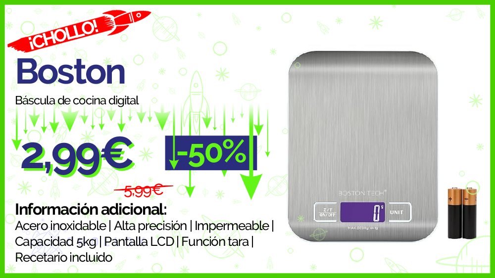 💥 🔉 Boston Tech - Báscula de cocina digital #Amazon