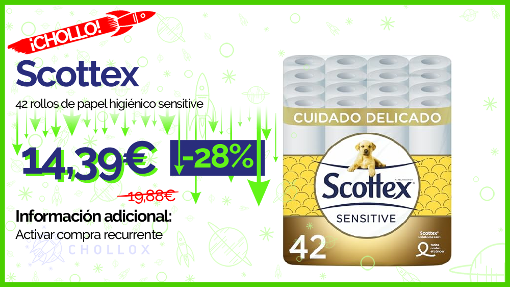 💥 🔉 Scottex - 42 rollos de papel higiénico sensitive #Amazon