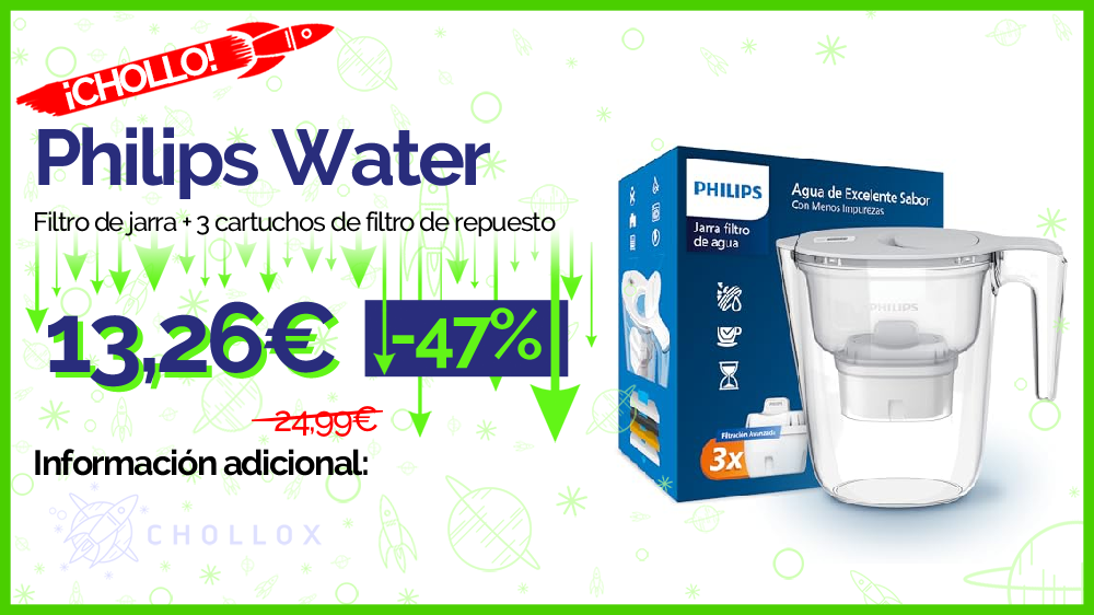 💥 🔉 Philips Water - Filtro de jarra + 3 cartuchos de filtro de repuesto | Capacidad 2,6L #Amazon