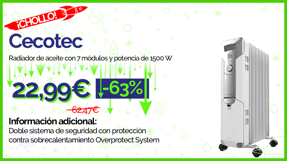 💥 🔉 Cecotec - Radiador de aceite con 7 módulos y potencia de 1500W #Amazon