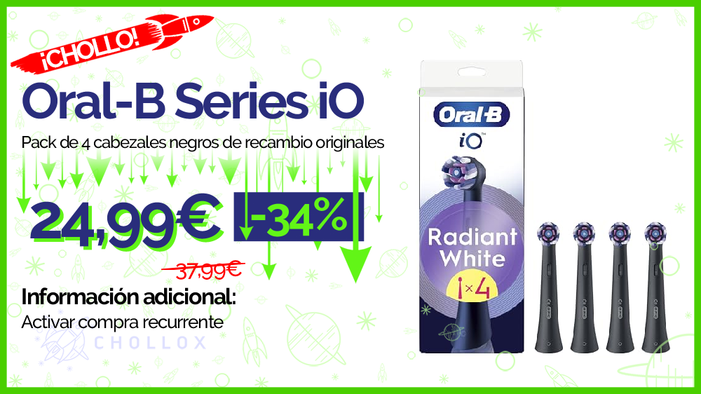 💥 🔉 Oral-B Series iO Radiant White - Pack de 4 cabezales negros de recambio originales #Amazon