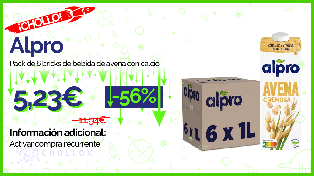 💥 🔉 Alpro - Pack de 6 bricks de bebida de avena con calcio #Amazon