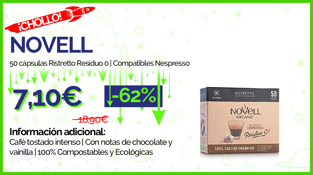 💥 🔉 NOVELL - 50 cápsulas Ristretto Residuo 0 | Compatibles Nespresso #Amazon