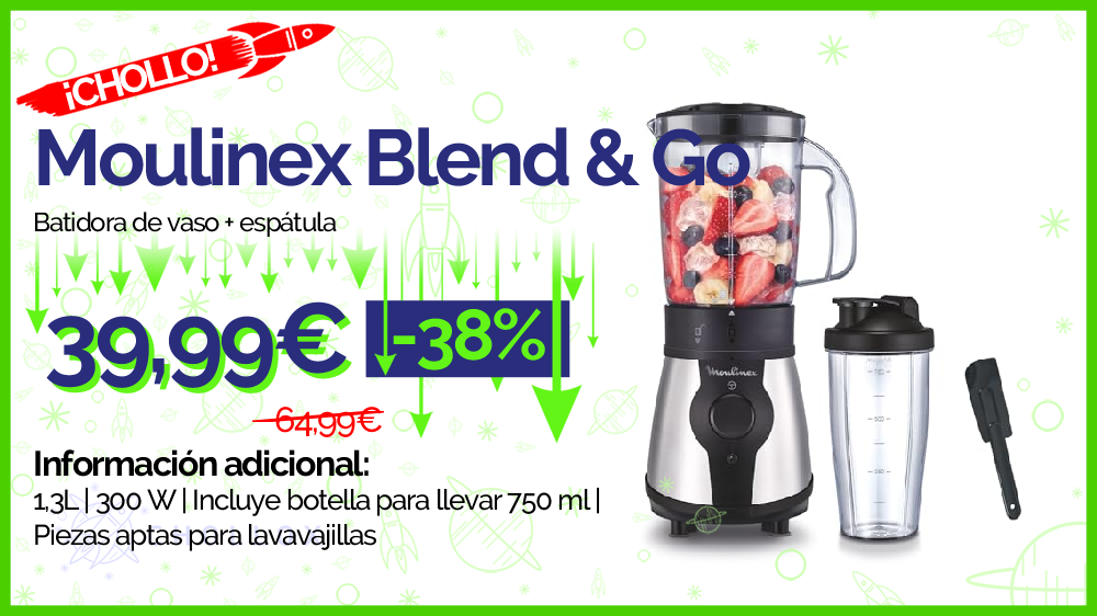 💥 🔉 Moulinex Blend & Go - Batidora de vaso + espátula #Amazon