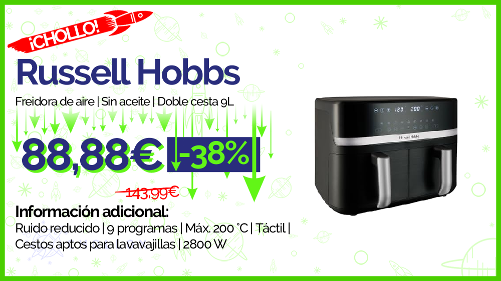 💥 🔉 Russell Hobbs - Freidora de aire | Sin aceite | Doble cesta 9L #Amazon