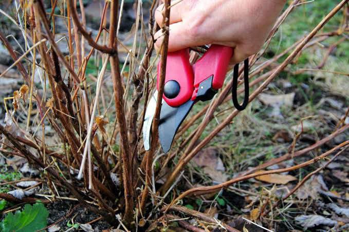 У малины — вырежьте отплодоносившие побеги, а у ремонтантной — всю надземную часть (но только после наступления холодов).
