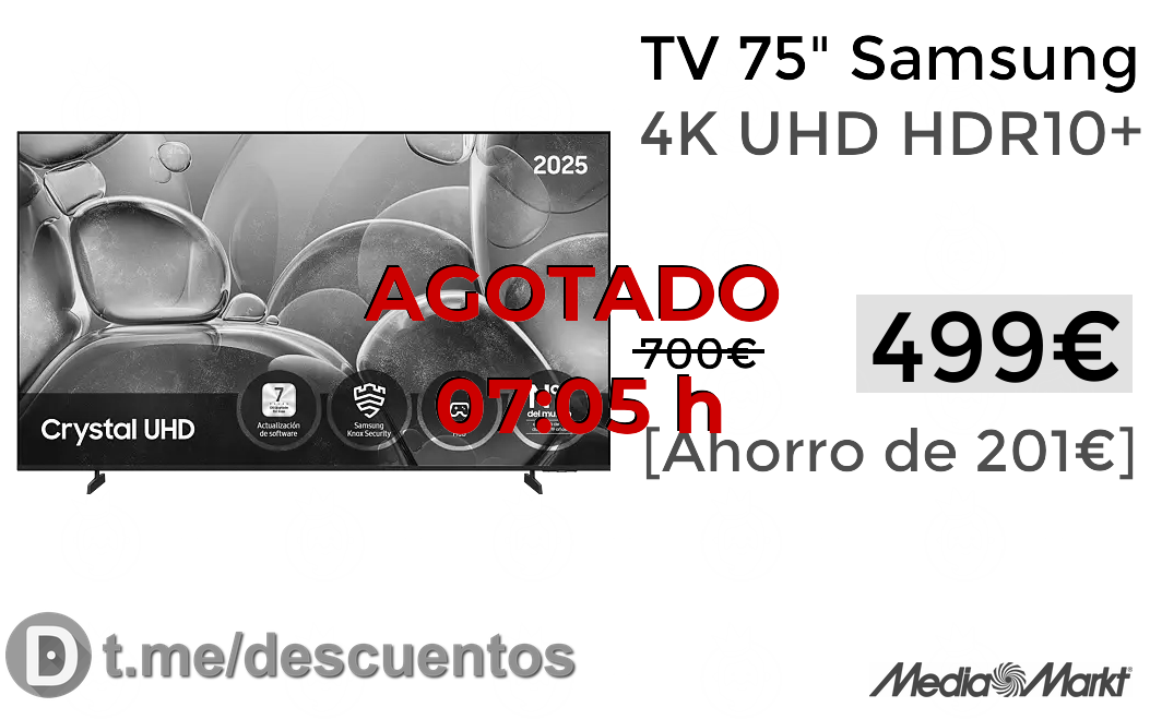 🔹TV 75" Samsung 4K UHD HDR10+ solo 499€❗️⚡️ (PVP: +700€)