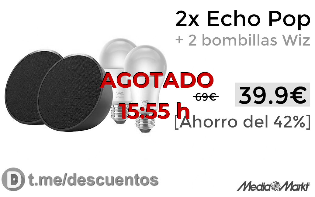 🔹2x Echo Pop + 2 bombillas Wiz solo 39.9€❗️⚡️ (PVP: +69€)