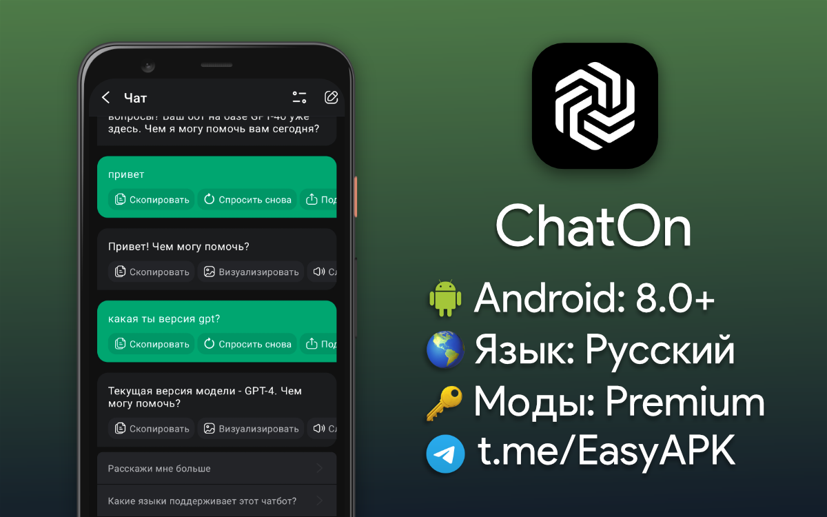 ChatOn — хороший чат-бот с доступом к нейросети GPT-4. #apps @EasyAPK