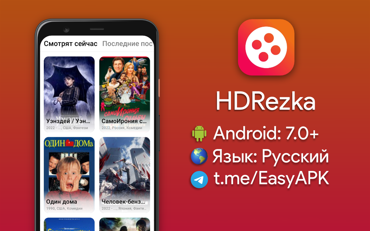 HDRezka — удобный неофициальный клиент для популярного пиратского кинотеатра HDRezka. #apps @EasyAPK