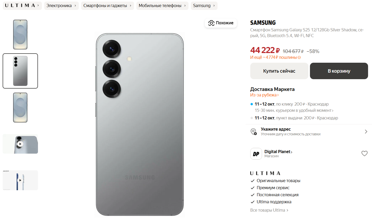 🔥Samsung Galaxy S25 за 44 222 рубля на Маркете