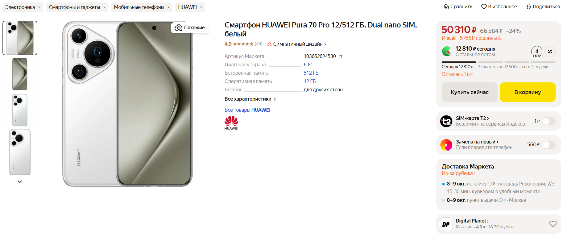 📸Huawei Pura 70 Pro за 50 310 рублей на Маркете