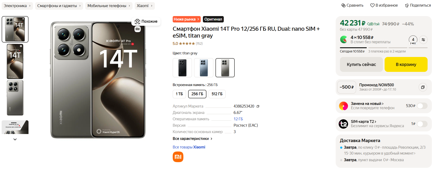 💣Xiaomi 14T Pro за 42 231 рубль при оплате картой «Пэй» на Маркете