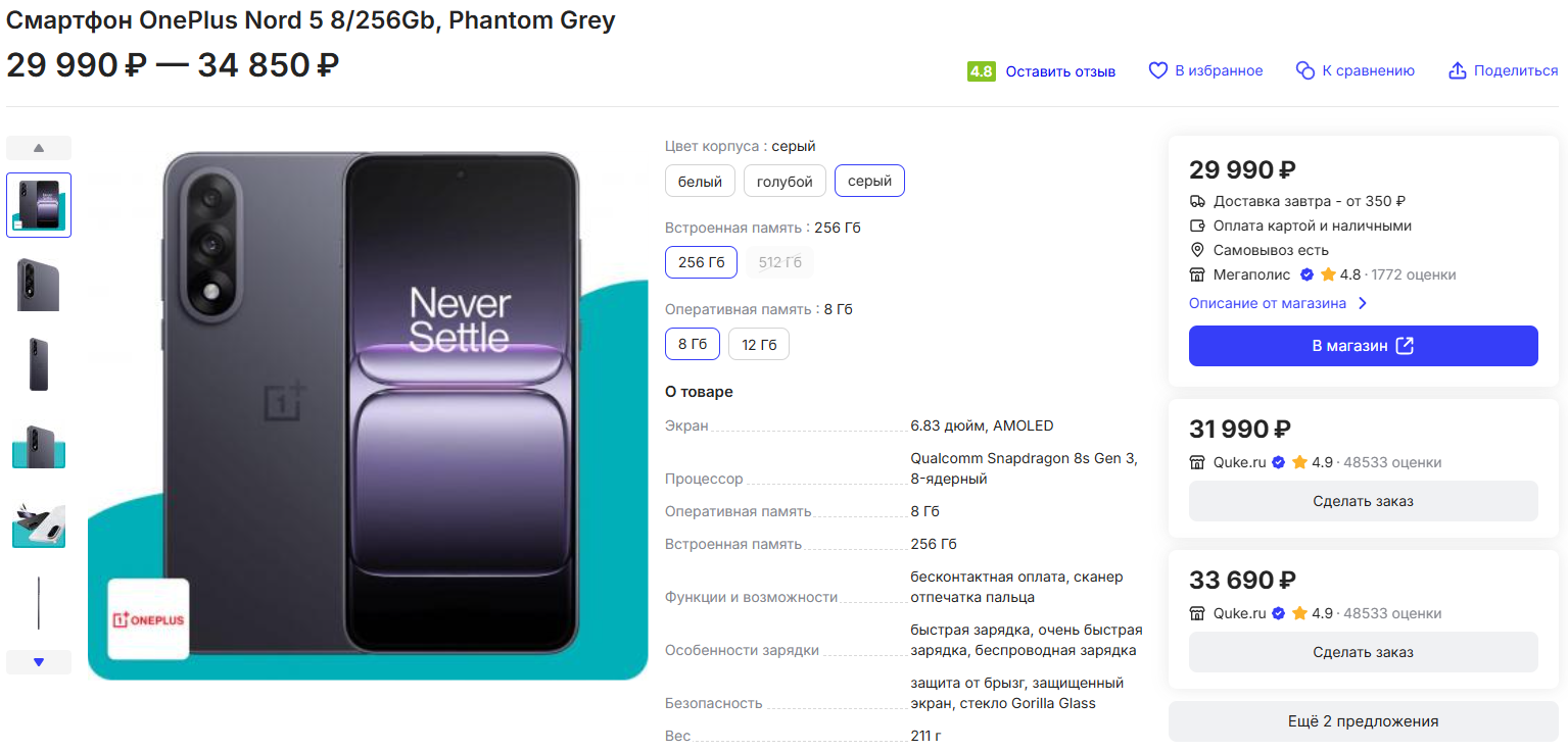 📱OnePlus Nord 5 за 29 990 рублей на price.ru