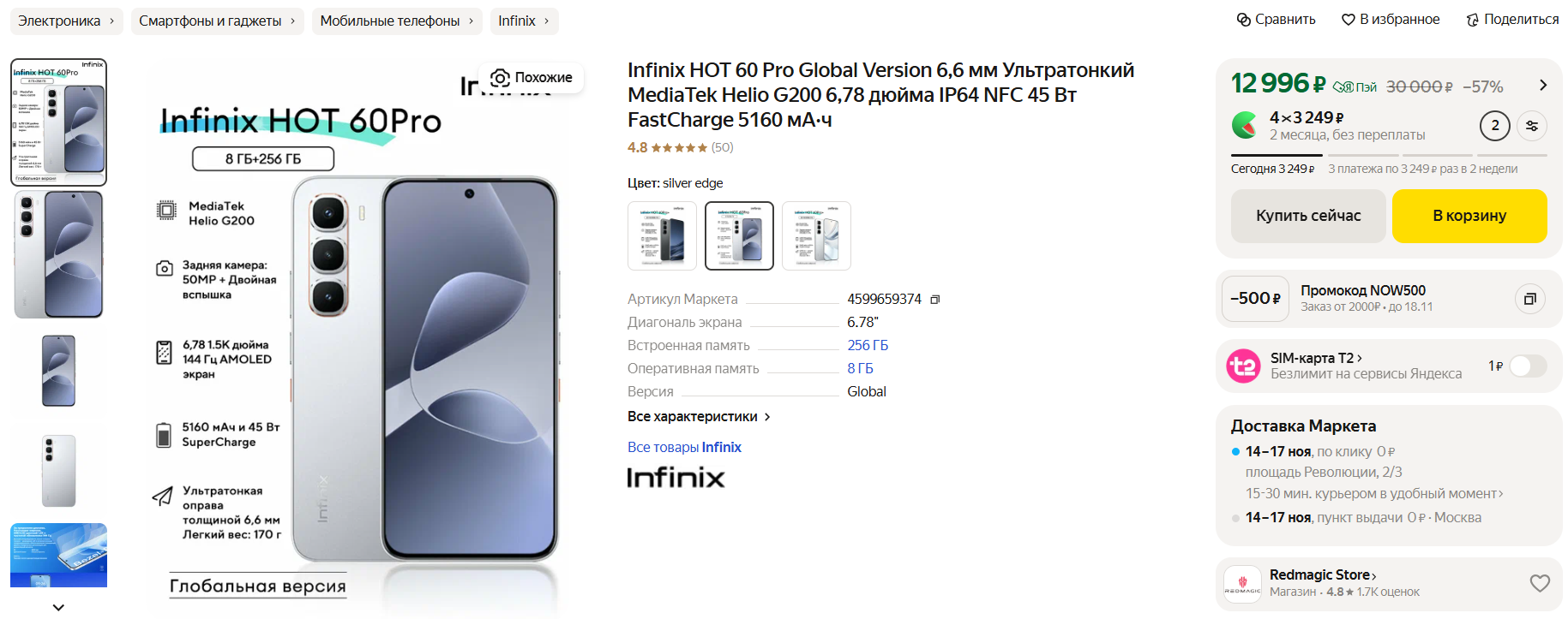 💣Infinix Hot 60 Pro за 12 996 рублей при оплате картой «Пэй» на Маркете