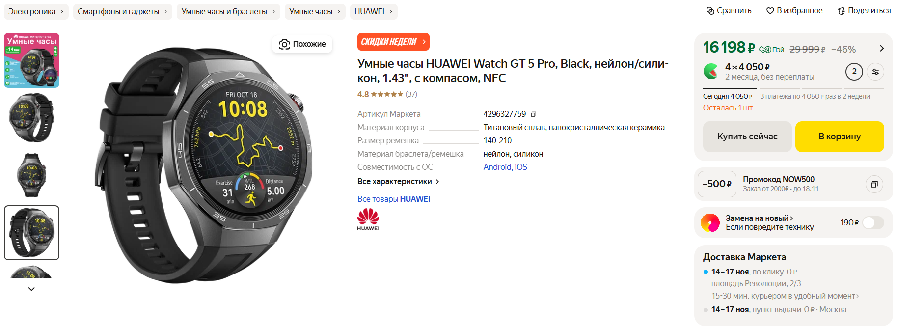 ⌚️Huawei Watch GT 5 Pro за 16 198 рублей при оплате картой «Пэй» на Маркете