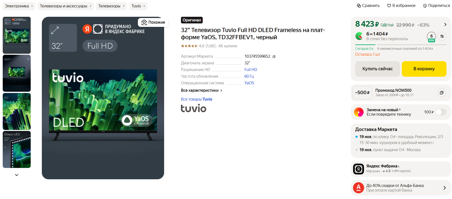 📺Tuvio TD32FFBEV1 за 8 423 рубля при оплате картой «Пэй» на Маркете