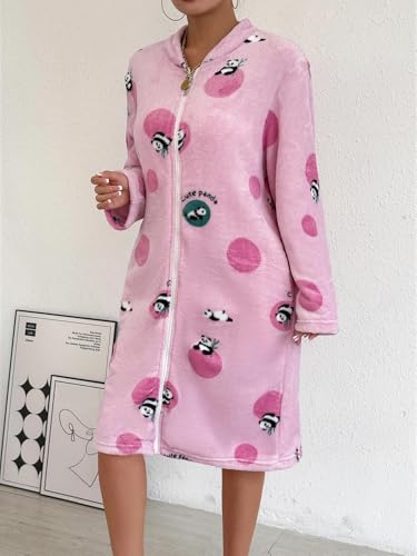 🌀Bata gruesa para mujer, manga larga, cremallera, acogedora, ropa de descanso para el hogar, diseño de bolsillo, ropa de dormir de ajuste relajado, Color rosa, M ❗️ #Amazon 🇪🇸