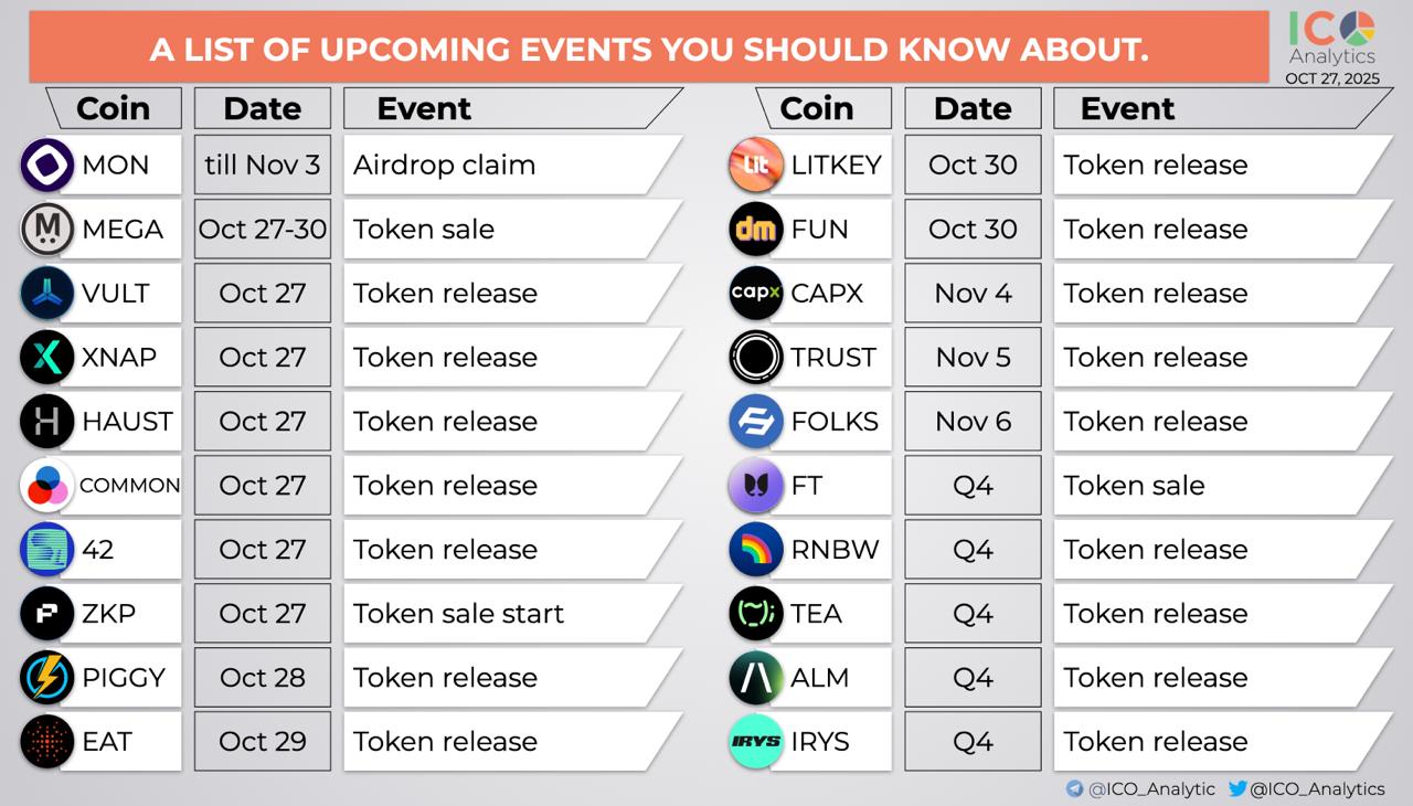 Updated: A short list of the upcoming TGEs, primary listings, product releases you should know about.