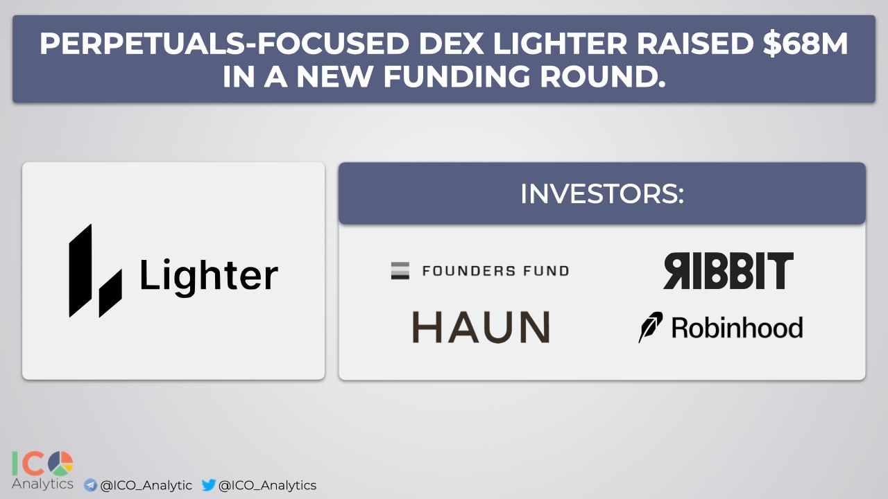 Perpetuals-focused DEX Lighter raised $68M in a new funding round. The fundraise was led by Peter Thiel’s Founders Fund and the fintech investor Ribbit Capital. Other participants included Haun Ventures and the online brokerage Robinhood. The round valued Lighter at around $1.5B.