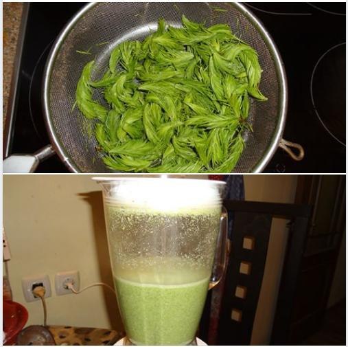 Это известный напиток, очень полезный. Я видела как его делают из веток елки с жесткими зимними иголками, прямо с палками, в мощном блендере. Это зимний напитком, т.к. зимой в хвое витамина С в 3-4 раза больше чем летом.