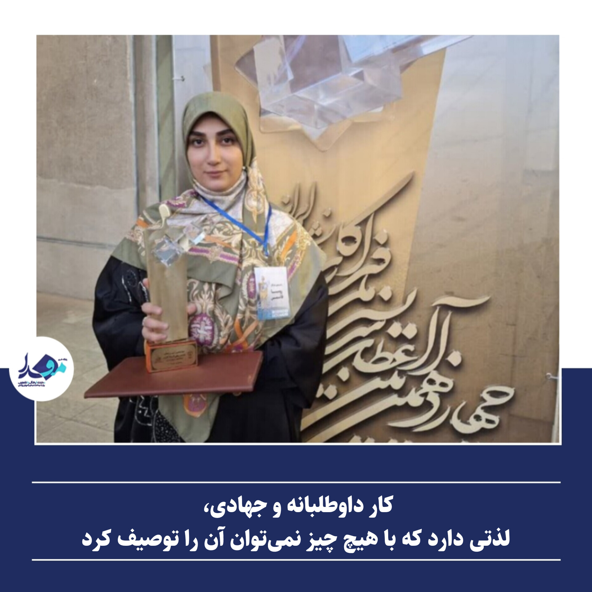 🟢 رومینا قاسمی، برگزیده چهاردهمین آیین اعطای تندیس ملی فداکاری دانشجویان کشور و دانشجوی کارشناسی ارشد آموزش پزشکی دانشگاه علوم پزشکی شهید بهشتی، با اشاره به لذت خدمت داوطلبانه و جهادی، گفت: «کار داوطلبانه و جهادی، لذتی دارد که با هیچ چیز قابل توصیف نیست.»
