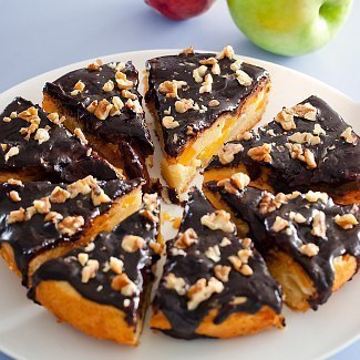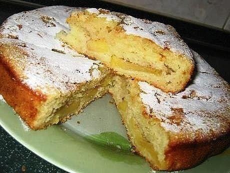 Все, вынимается он сам собой. Украшайте как нравится, делайте тортик, заливайте сметанкой или взбитыми сливками - все будет в точку. Я украсила в этот раз манник вареньем из персиков, очень гармонично получилось.