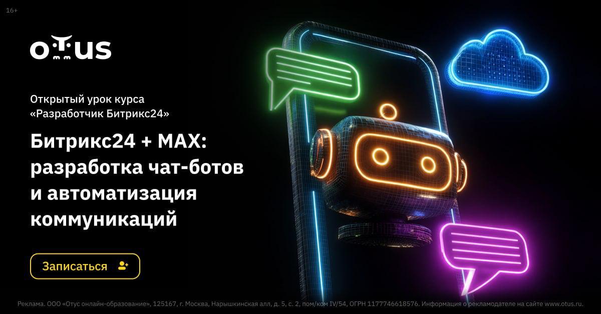 🧠 На открытом уроке разберём, как использовать связку Битрикс24 и платформы MAX для создания чат-ботов и автоматизации коммуникаций внутри компании и с клиентами. Поговорим о возможностях интеграции, сценариях автоматизации и том, как чат-боты помогают снижать нагрузку на сотрудников, ускорять обработку запросов и выстраивать более эффективные бизнес-процессы. Рассмотрим практические кейсы применения ботов в корпоративных и клиентских коммуникациях.