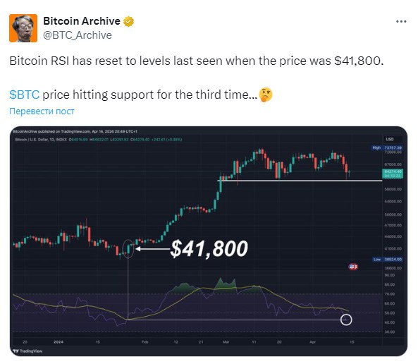 🤔 "RSI биткоина вернулся к уровням, которые последний раз наблюдались при цене $41 800.