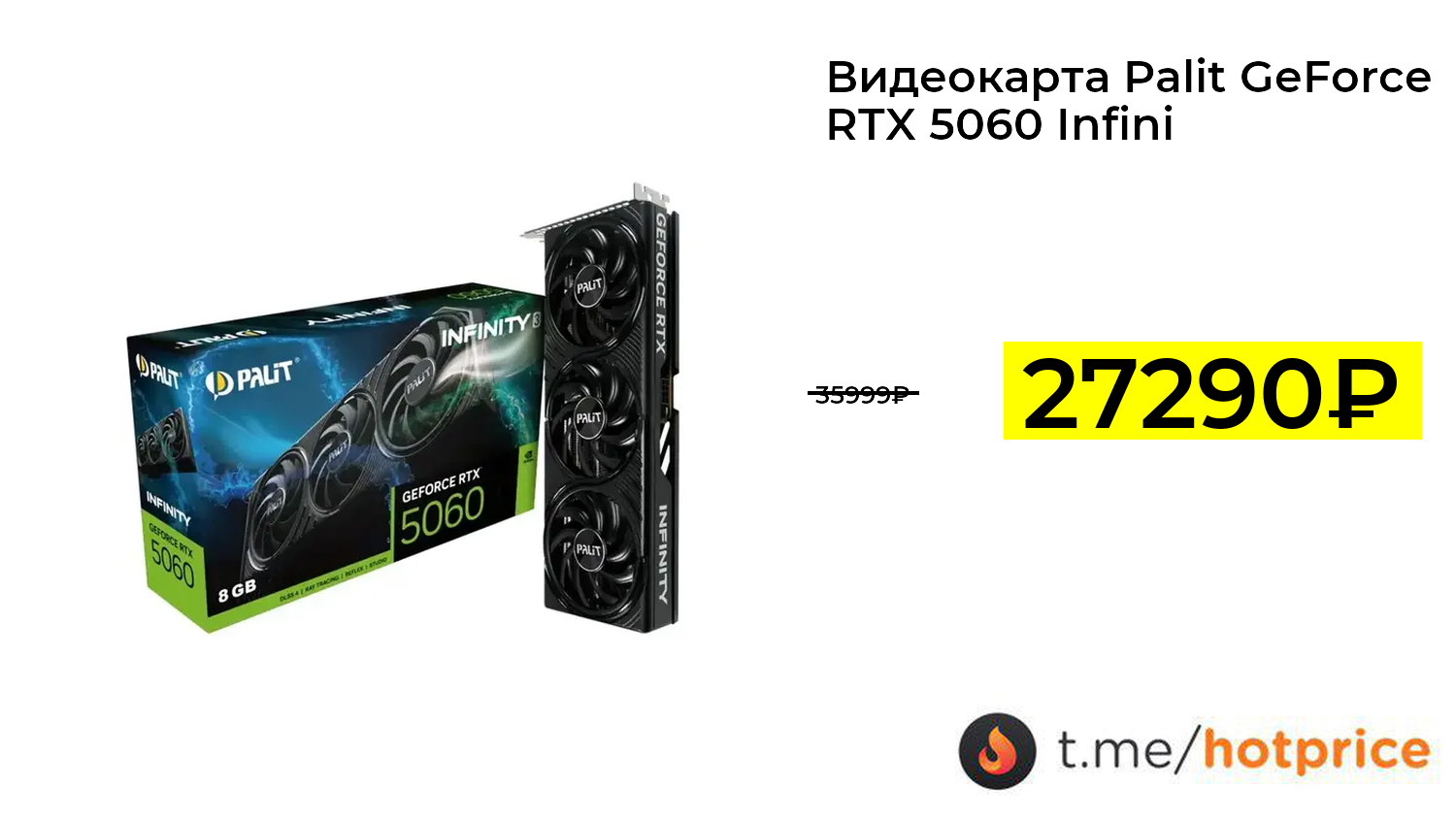 🔹 Видеокарта Palit GeForce RTX 5060 Infinity 3 8 ГБ (с WB кошельком) за 27290₽ ❗️ (везде: 35999+₽)