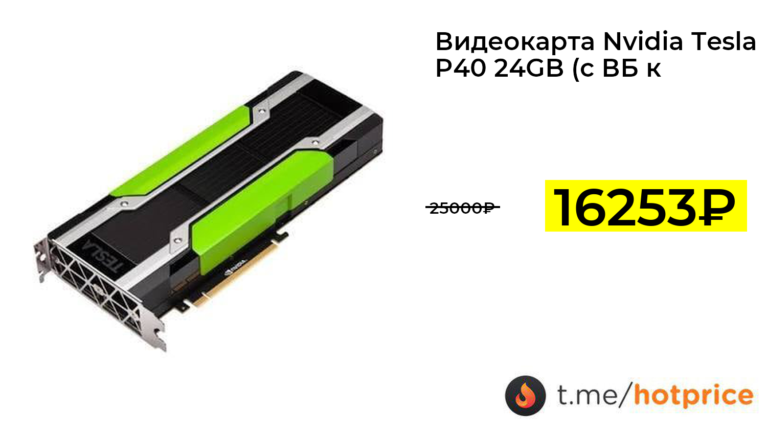 🔹 Видеокарта Nvidia Tesla P40 24GB (с ВБ кошельком) за 16253₽ ❗️ (везде: 25000+₽)