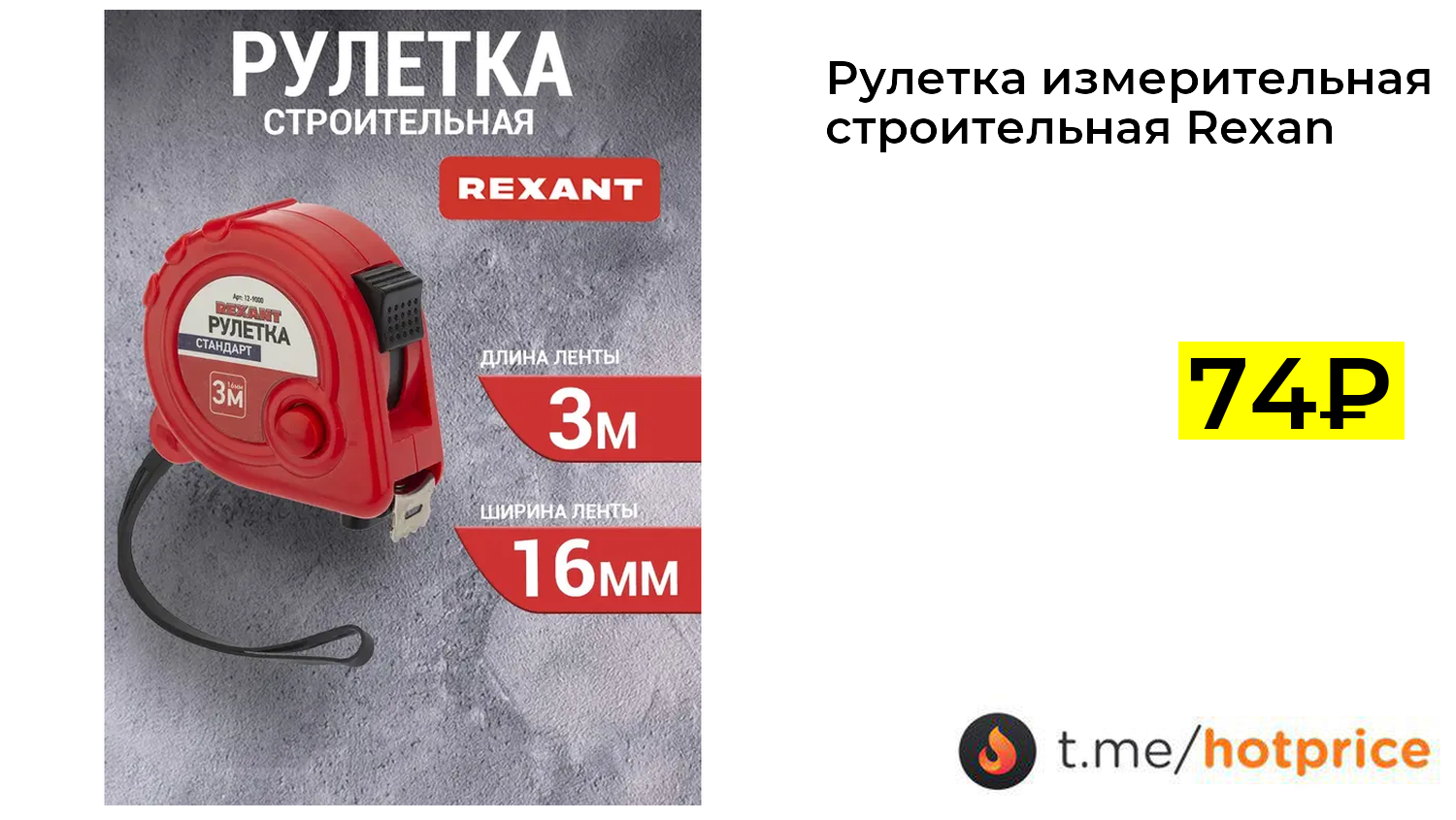 🔹 Рулетка измерительная строительная Rexant, 16 мм х 3 м (с ВБ кошельком) за 74₽ ❗️