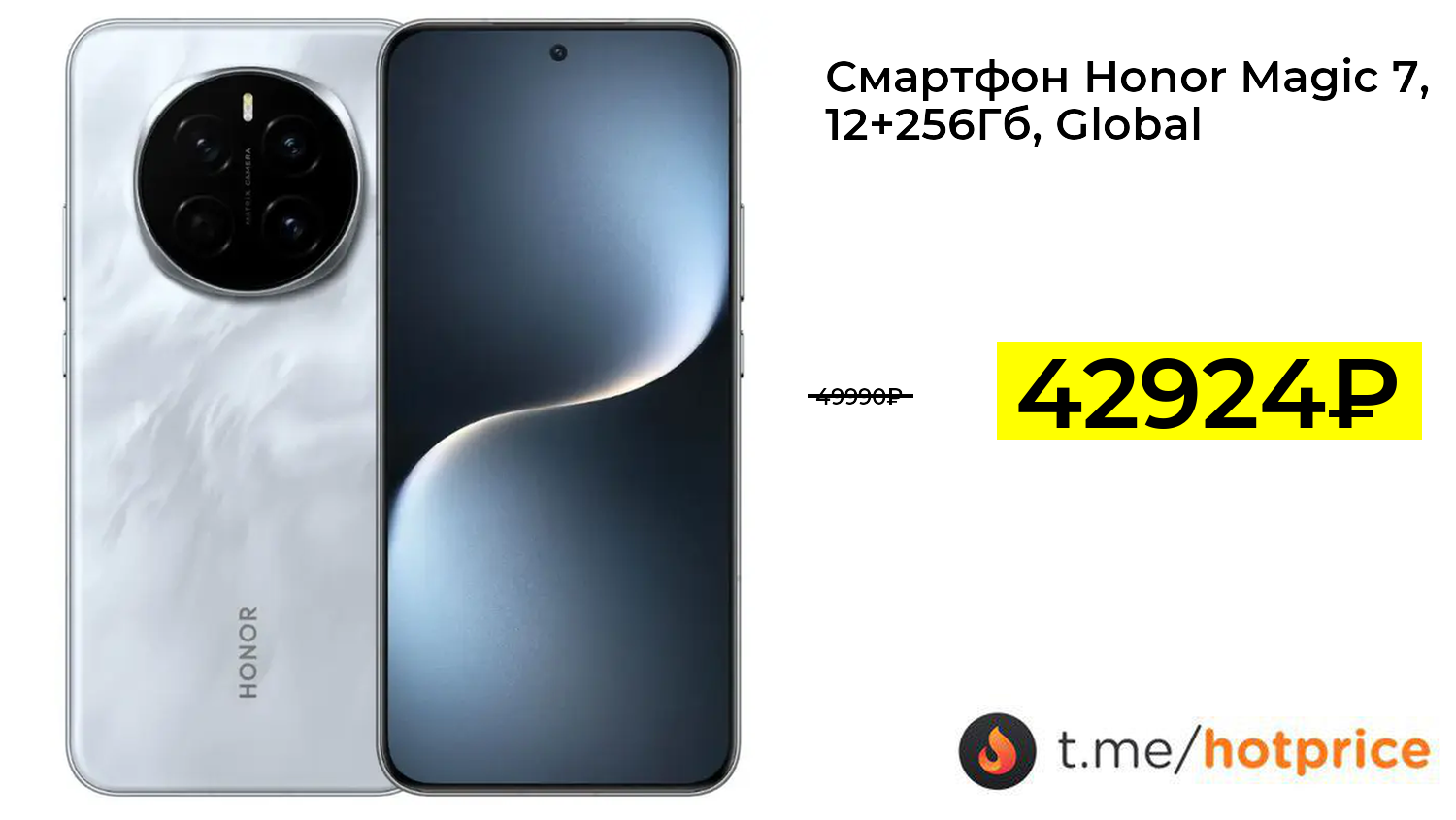 🔹 Смартфон Honor Magic 7, 12+256Гб, Global, OLED (из за рубежа, по озон карте + пошлина ~4600₽) за 42924₽ ❗️ (везде: 49990+₽)