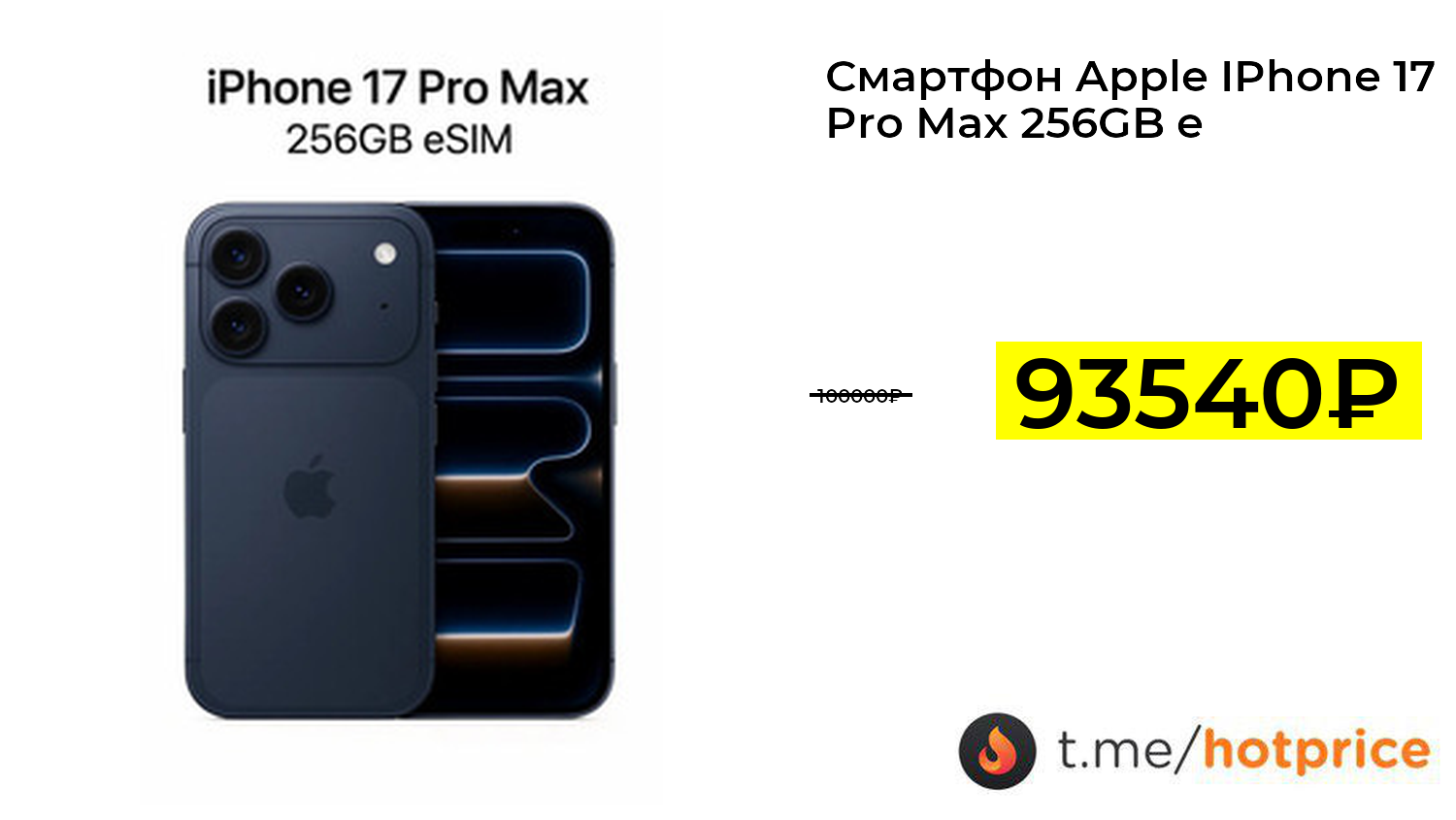 🔹 Смартфон Apple IPhone 17 Pro Max 256GB eSIM (с ВБ кошельком) за 93540₽ ❗️ (везде: 100000+₽)