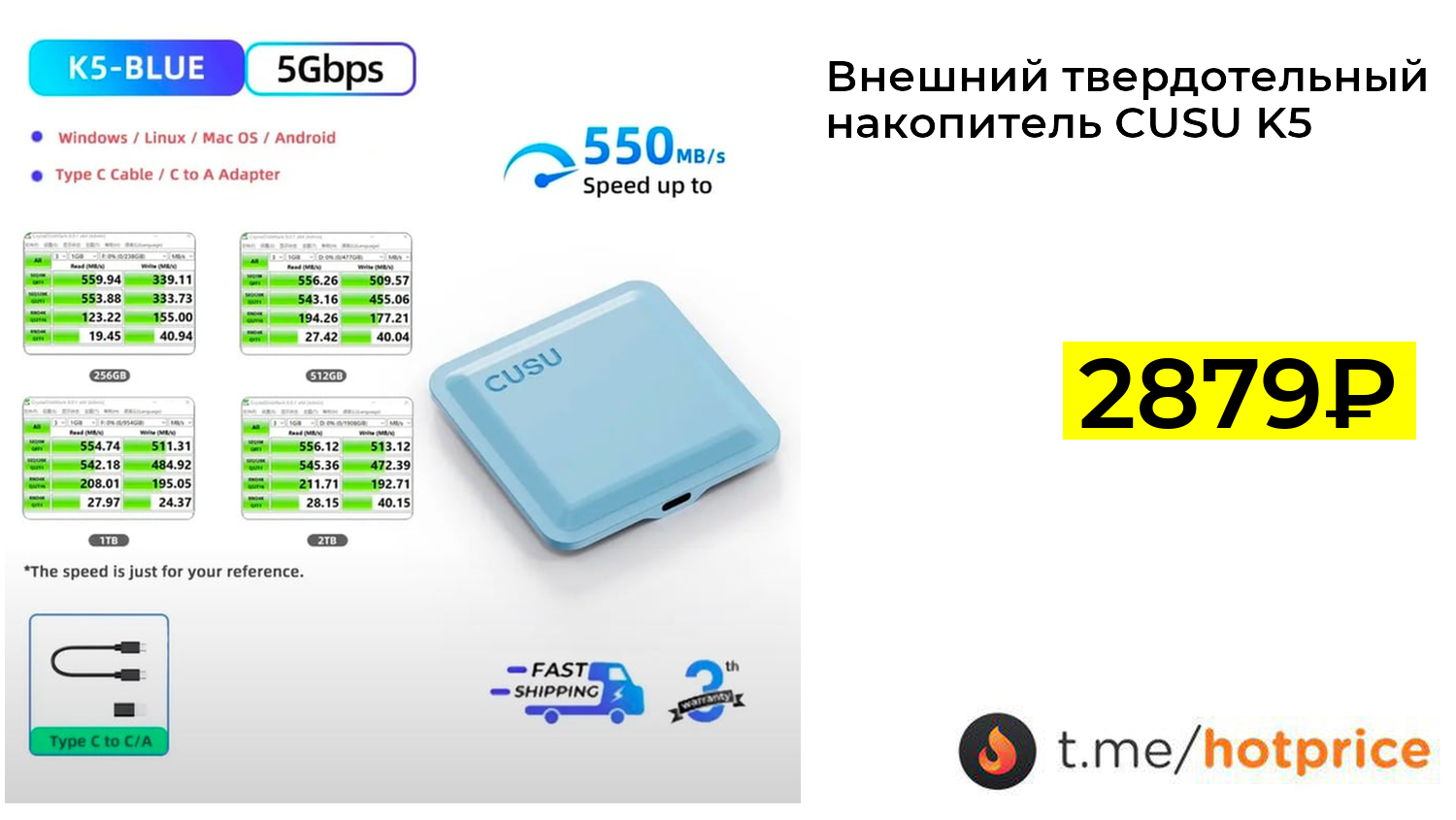 🔹 Внешний твердотельный накопитель CUSU K5 1Tb за 2879₽ ❗️