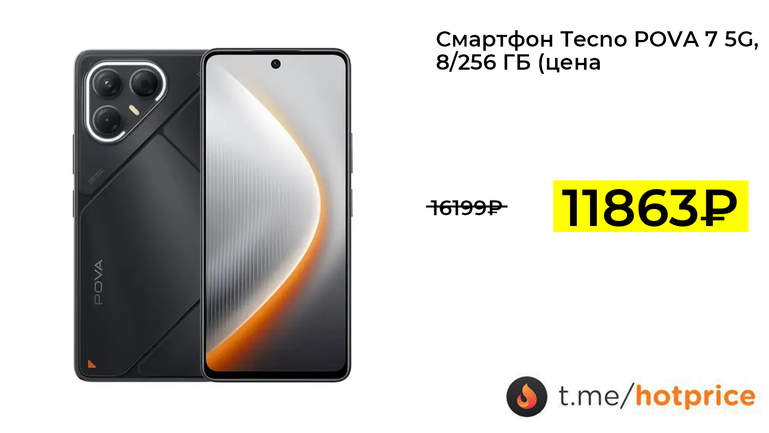 🔹 Смартфон Tecno POVA 7 5G, 8/256 ГБ (цена с макс. кошельком) за 11863₽ ❗️ (везде: 16199+₽)