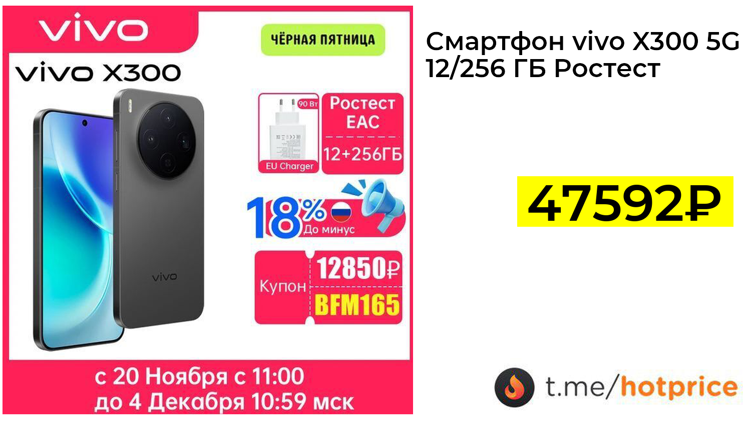 🔹 Смартфон vivo X300 5G 12/256 ГБ Ростест (EAC) за 47592₽ ❗️