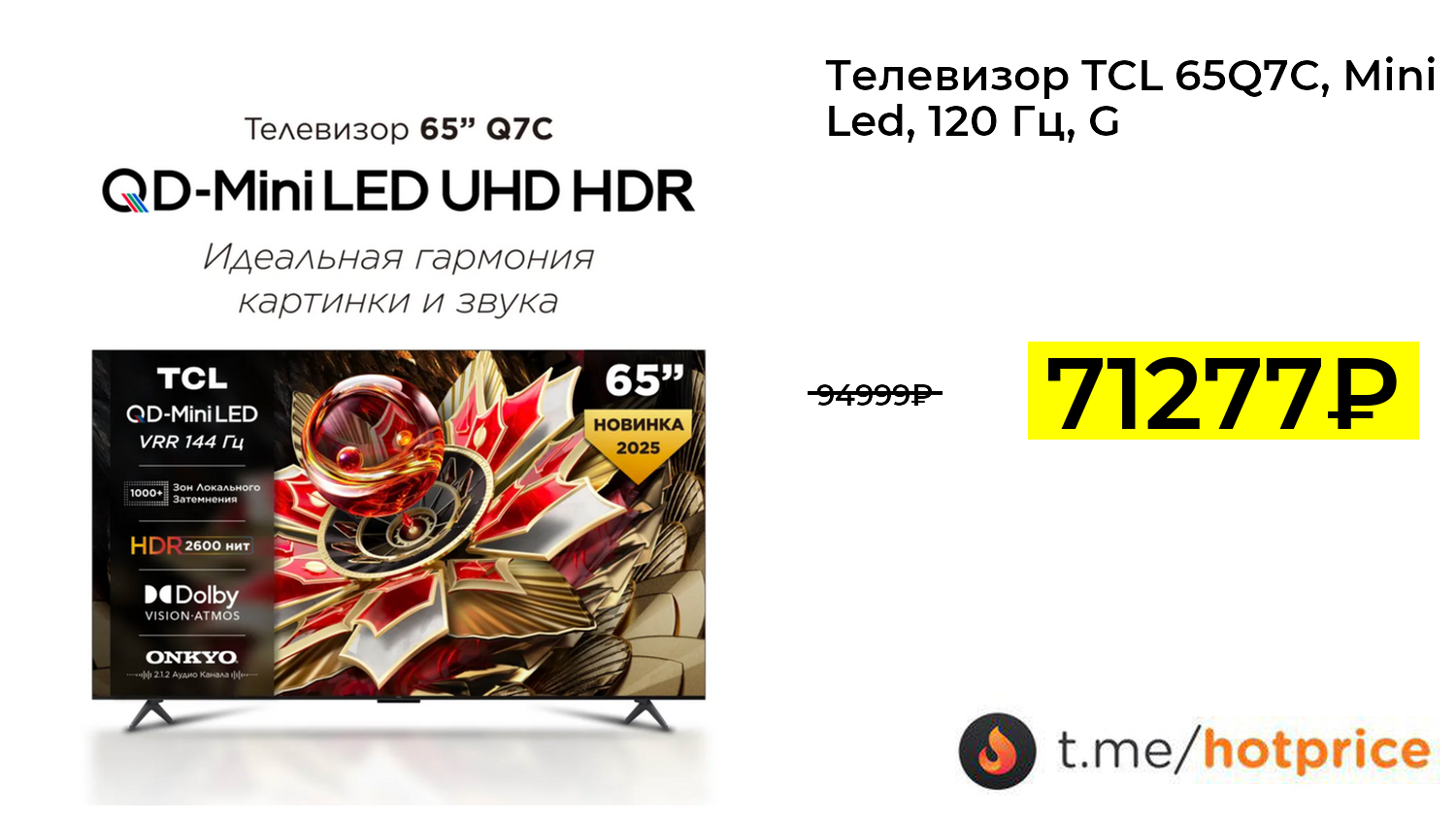 🔹 Телевизор TCL 65Q7C, Mini Led, 120 Гц, Google TV (3000₽ за отзыв, с ВБ кошельком) за 71277₽ ❗️ (везде: 94999+₽)