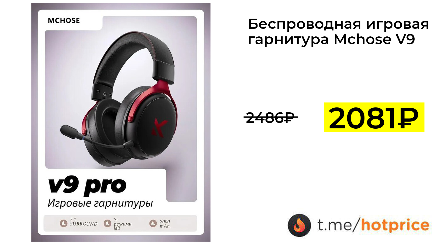 🔹 Беспроводная игровая гарнитура Mchose V9 Pro (с картой OZON) за 2081₽ ❗️ (везде: 2486+₽)