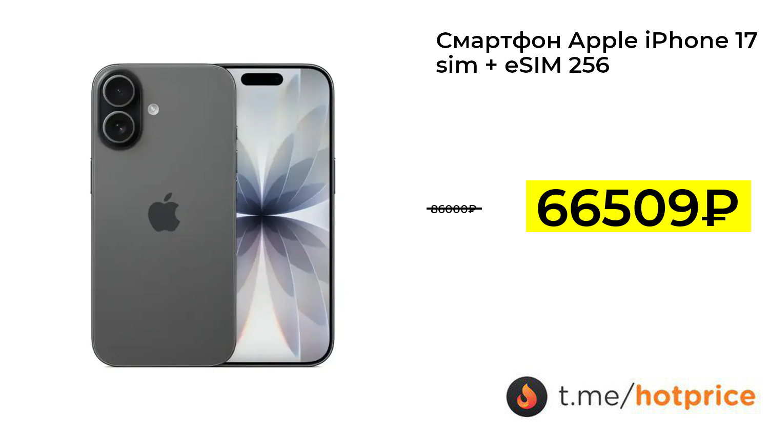 🔹 Смартфон Apple iPhone 17 sim + eSIM 256 Gb за 66509₽ ❗️ (везде: 86000+₽)