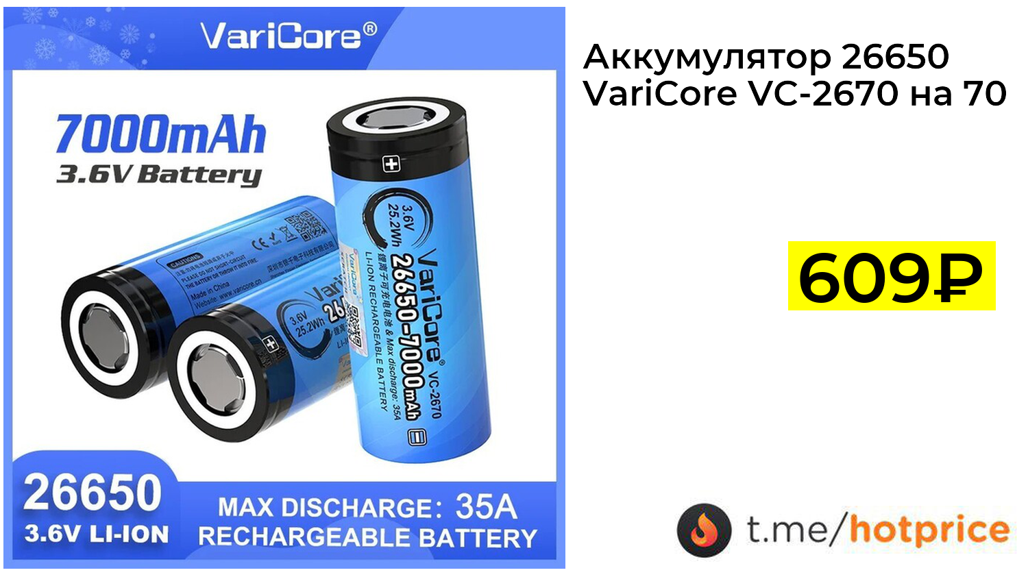 🔹 Аккумулятор 26650 VariCore VC-2670 на 7000 мАч 2 шт. за 609₽ ❗️