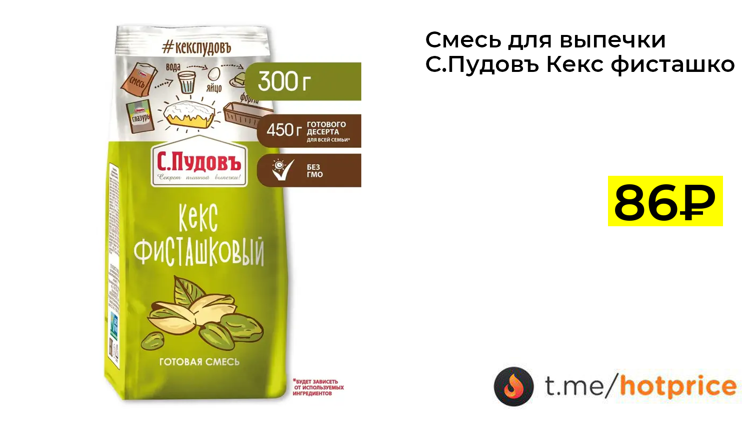 🔹 Смесь для выпечки С.Пудовъ Кекс фисташковый 300 г (с WB кошельком) за 86₽ ❗️