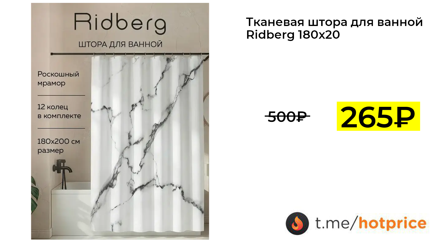 🔹 Тканевая штора для ванной Ridberg 180х200 см + кольца (с ВБ кошельком) за 265₽ ❗️ (везде: 500+₽)
