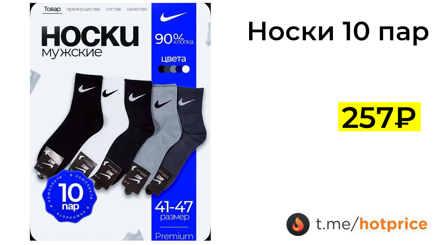 🔹 Носки 10 пар (с Ozon-картой) за 257₽ ❗️