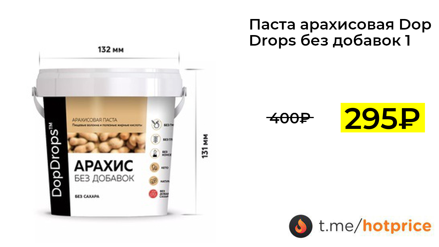 🔹 Паста арахисовая Dop Drops без добавок 1 кг за 295₽ ❗️ (везде: 400+₽)
