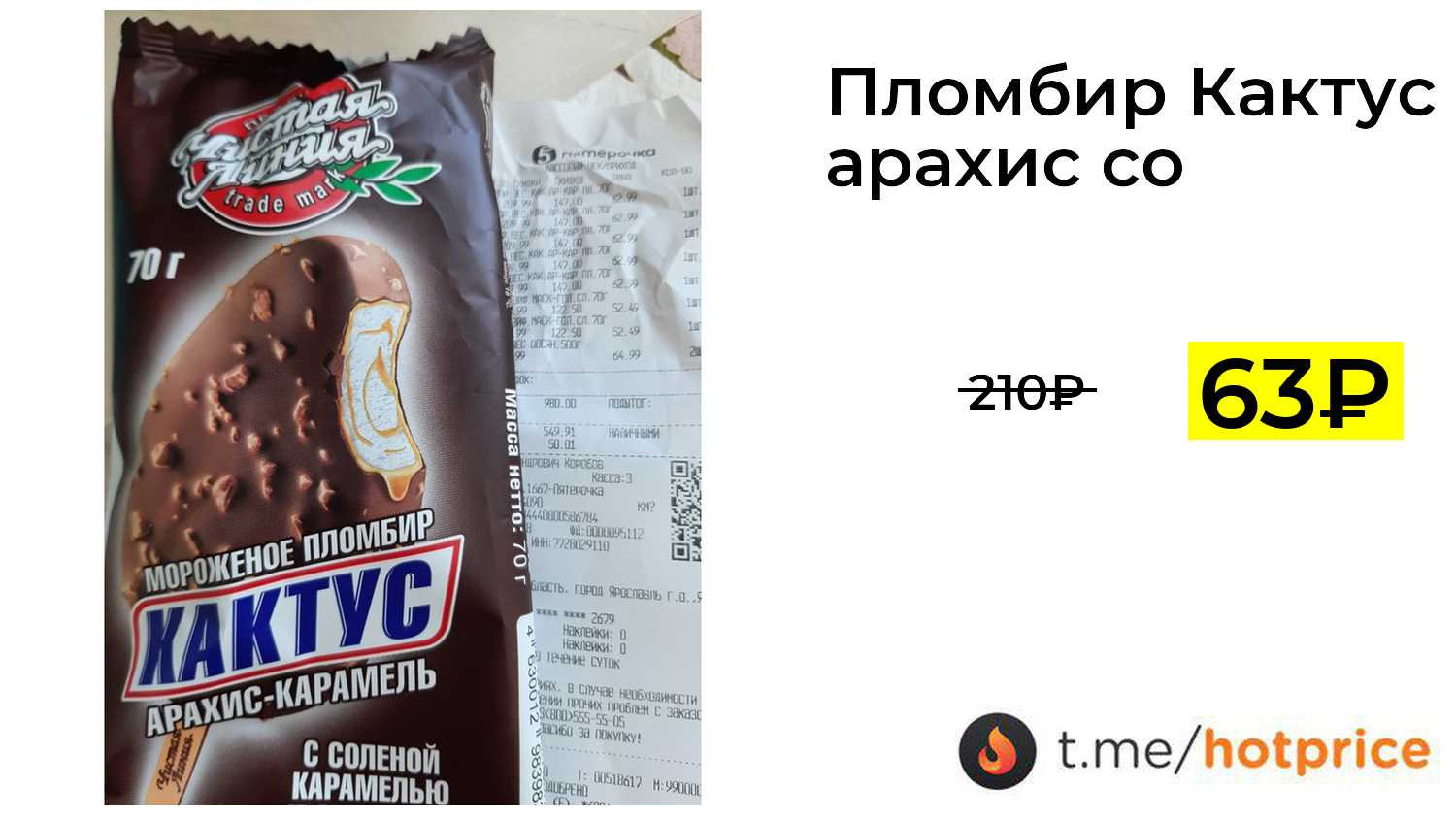 🔹 [МСК и м/б др.] Пломбир Кактус арахис соленая карамель 70 гр за 63₽ ❗️ (везде: 210+₽)