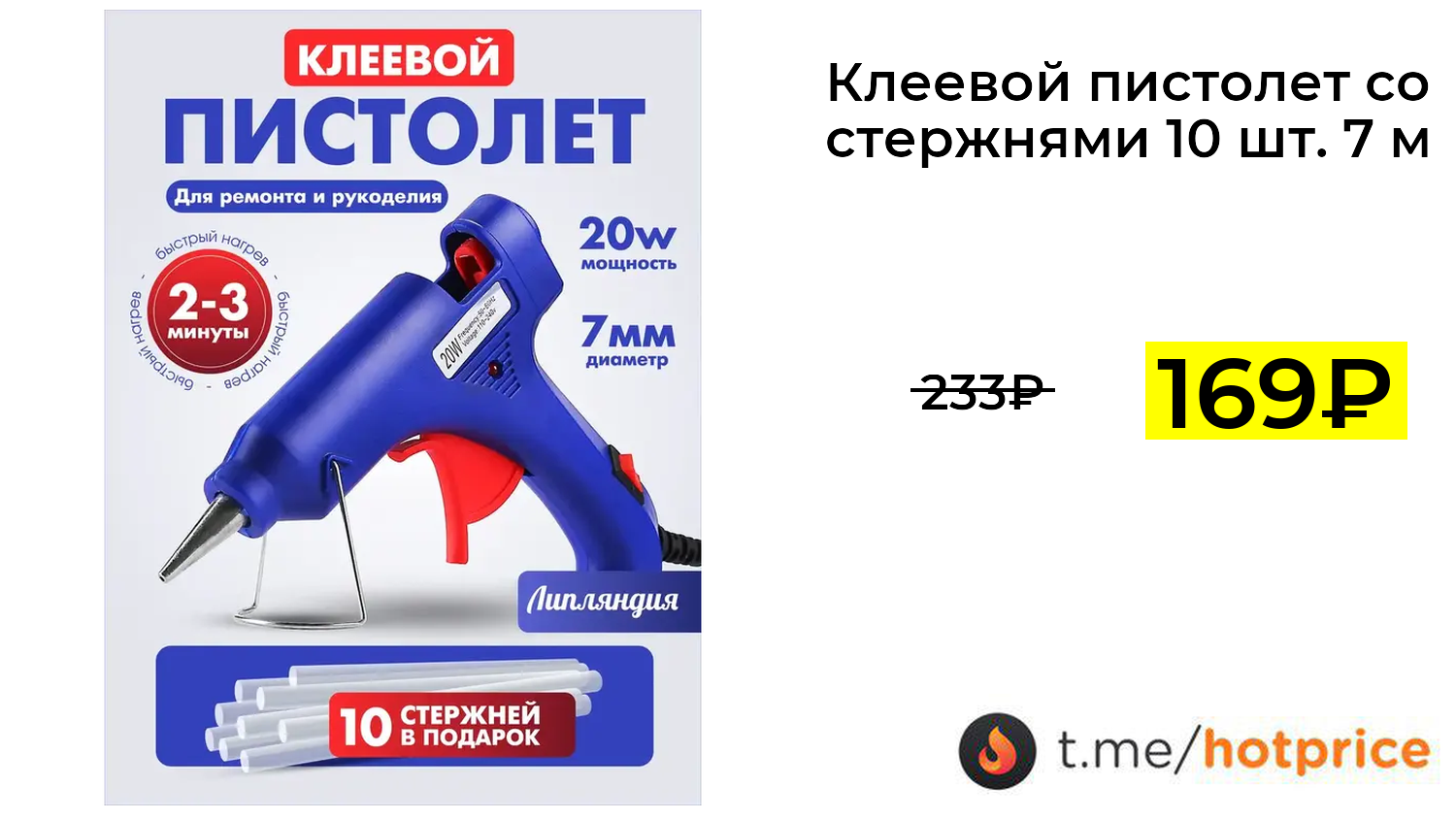 🔹 Клеевой пистолет со стержнями 10 шт. 7 мм, 20 Вт (с Ozon Картой) за 169₽ ❗️ (везде: 233+₽)