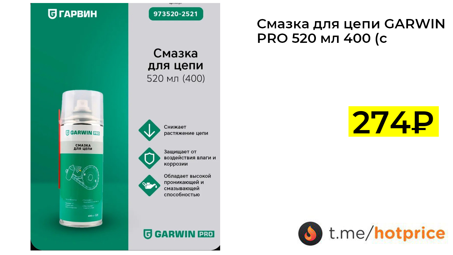 🔹 Смазка для цепи GARWIN PRO 520 мл 400 (с картой OZON) за 274₽ ❗️