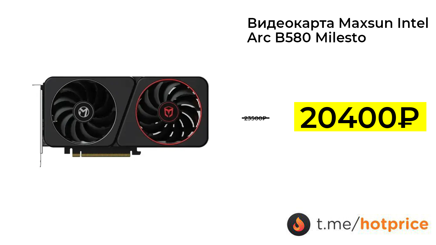 🔹 Видеокарта Maxsun Intel Arc B580 Milestone 12G (с макс. кошельком, с подпиской) за 20400₽ ❗️ (везде: 23500+₽)