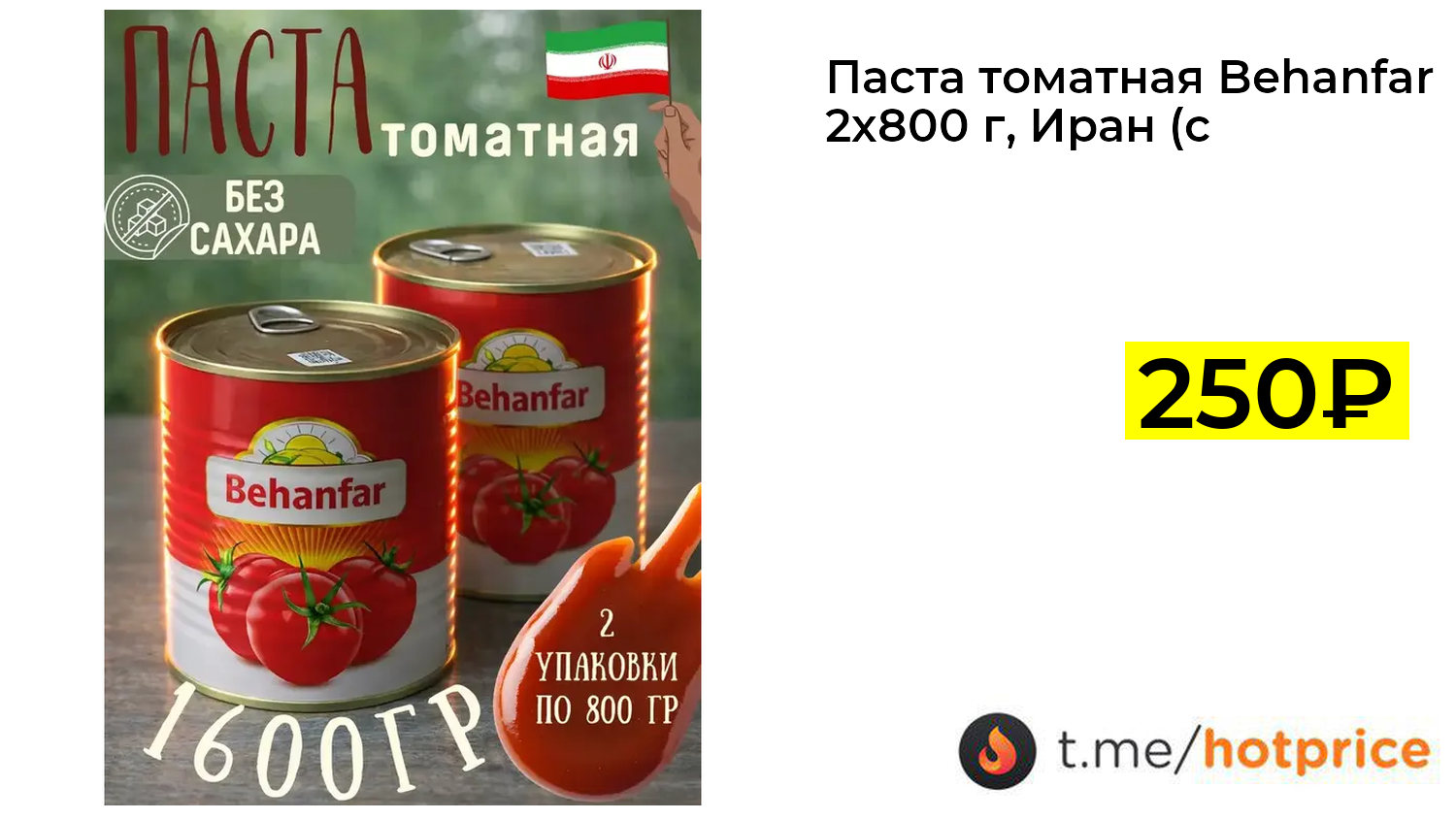 🔹 Паста томатная Behanfar 2х800 г, Иран (с WB кошельком) за 250₽ ❗️